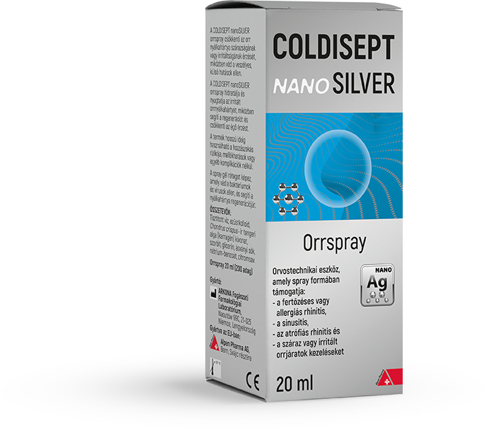 A COLDISEPT nanoSILVER orrspray csökkenti az orr nyálkahártya szárazságának vagy irritáltságának az érzését, miközben véd a veszélyes, külső hatások ellen. Hidratálja és nyugtatja az irritált orrnyálkahártyát, miközben segíti a regenerációt és csökkenti az égő érzést. Az ezüstkolloid nagyon erős bakteriális hatású. A termék ezüst nanorészecskéket tartalmaz, amelyek csökkentik a baktériumok növekedését. A termék további sajátosságait az ásványi anyagok, valamint a növényi kivonat hatásai adják.